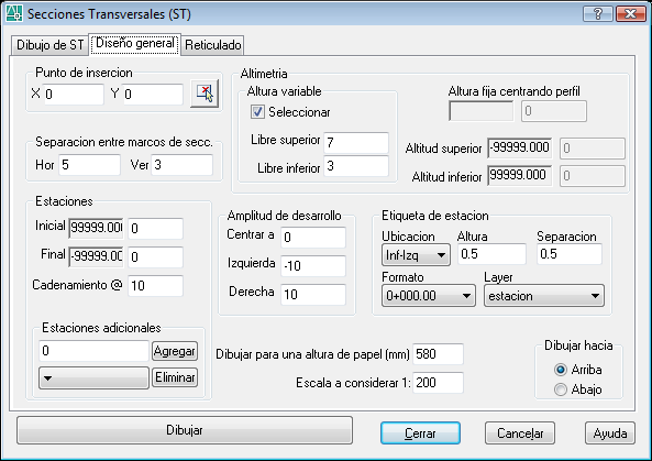 Dibujar para una altura de papel (mm) permite especificar la altura del papel donde se pretende dibujar, este valor es usado para decidir cuantas ST se dibujaran por columna, también en función de la Escala a considerar.